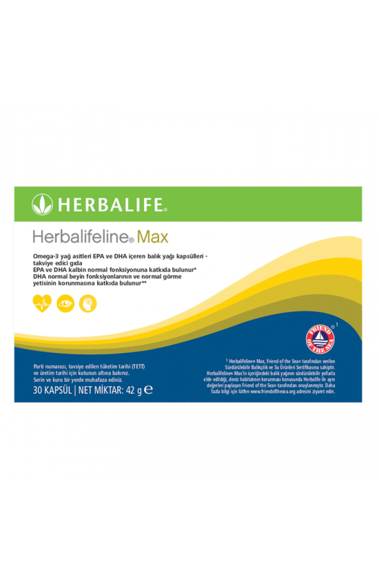 Herbalifeline Max, Omega-3 yağ asitleri EPA ve DHA içeren balık yağı kapsülleri formunda bir takviye edici gıdadır.